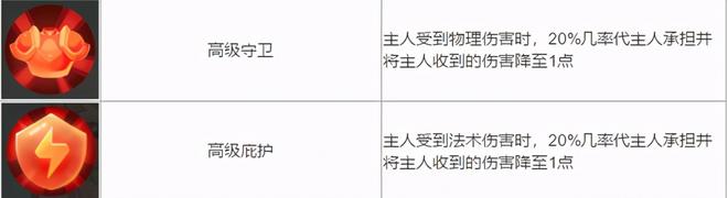 【高级守卫】和【高级庇护】是肉婴必须升级的技能。毕竟帮助主人承担伤害的概率提高到30%,战场效果可见一斑。