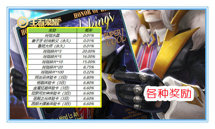 在这六种奖项中,玲珑夺宝可以获得的奖励是难得一见的道具,直接抽中的概率只有玲珑水晶、永久皮肤、永久英雄,也就是万分之一。