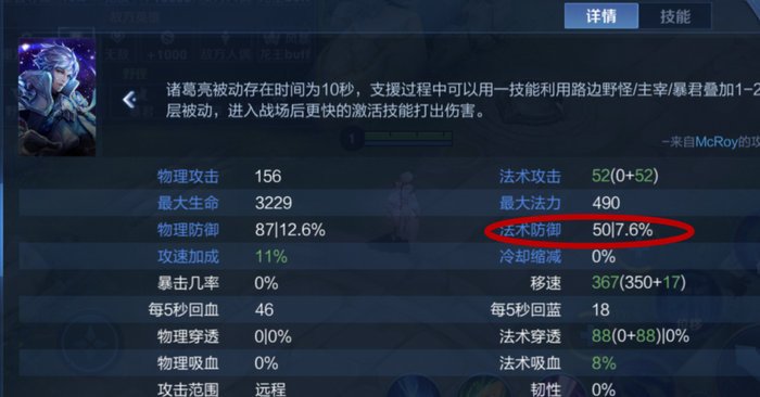 比如下图:英雄有50点法术防御点,可以减少7.6%的法术伤害。我们在公式中代入50,得到50/(50 602)*100%7.6%,与描述的数据一致。