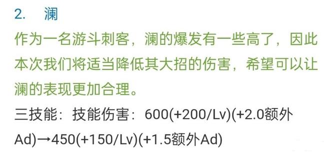 但此时,官方还没有放过兰,而兰很快就迎来了第四次削弱。这次调整,大招造成的伤害被砍了,刮伤造成的伤害更惨。想必以后玩兰的玩家会越来越少。