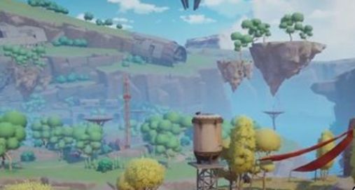 这里有个石头,击碎石头出现橙色传送点,进入传送到空中平台。