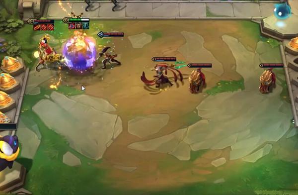 直接靠凯南一个大地春雷把对面全部电烂,剑魔可以把在角落里的四星厄斐琉斯拉出来,然后风女锤石给盾,三猩红拉个加里奥前期连胜后期打个控制挨揍