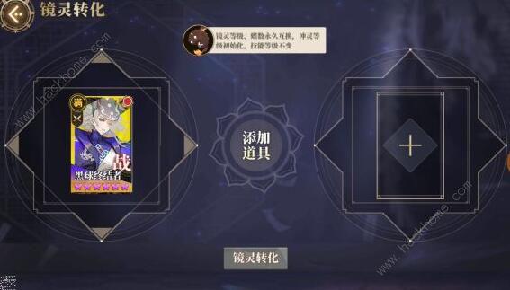 玩家在镜灵界面点击育成,在下方有个转化按钮。转化后镜灵的等级、蝶数互换,冲灵等级初始化,技能等级不变。镜灵转化需要消耗转化符,虽然现在功能已经有了,但转化符还没出。