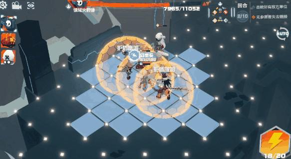 未拥有护盾时恢复自身最大生命值20%,拥有护盾时会清除自身护盾,对周围1格范围内的所有敌方单位造成自身最大生命20%的物理伤害。同样是攻守兼备的技能。按照自身最大生命值计算的效果,在此推荐大家在零件选择上,可以倾向于增加生命值。
