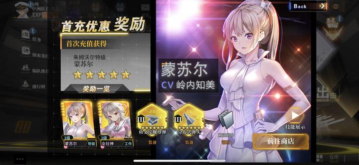 全面升级为5星舰姬蒙苏尔、5星女灶神、金色满星T3导弹、金色满星T3弹头、50000钢。