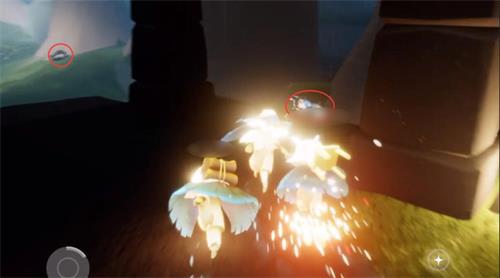 出洞口后先往右侧小亭子飞,亭子边上有个蜡烛点
