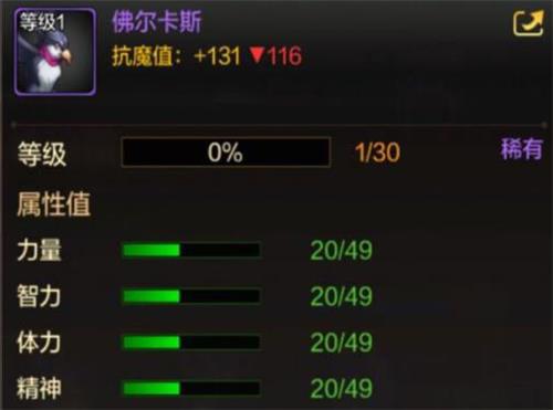 2、属性上,玩家在搭配后可以立刻获得力量、精神、体力以及智力分别20点,而这些属性恰好都是职业所需求的,配置后可以最大限度的打出进阶收益。不过,后续玩家亦可选择为之进行培养,如此其基础数值可以得到更多限度的解锁,并直至最终的49点,增加了一倍之多;