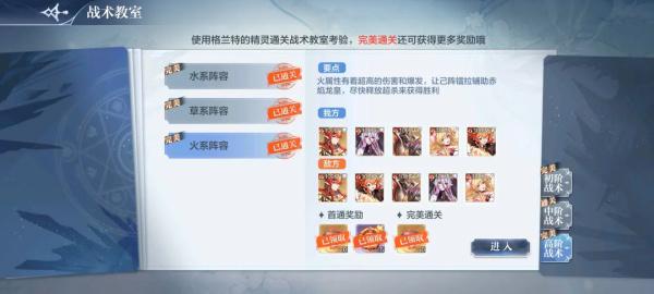 在这之中,玩家可以通过大厅-冒险-战术教室进入和参与。同时,这里建议小伙伴们尽可能的在阵容上下功夫,即只有阵容搭配合理了,玩家才能拥有更高的通过概率,反之亦然。