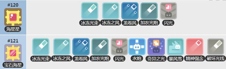宝石海星可以学习水炮、攀瀑、冲浪、暴风雪等一系列强力的水系技能。这里比较推荐的是选择水炮或者暴风雪,远距离的连续范围攻击,适合用于消耗敌人。此外它也可以学习超能力系的技能,例如精神强念,能够降低敌人的防御。