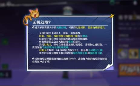无极幻境的奖励按照打到的层数来结算,在无尽模式可以产出残影道具,这些东西是可以一直继承的,在你打不过的时候,多重开几次来提升残影的数量就能不断提高实力,只是在每周重置后原来的残影数量会清空。