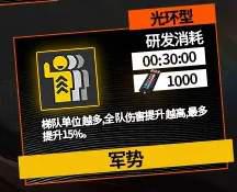 效果:梯队部署后的首次战斗不消耗弹药和口粮且伤害提升15%。