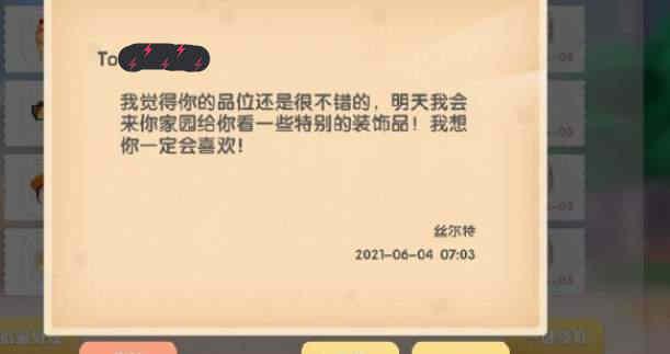 NPC拜访是有随机性的事件,需要一定运气才能触发。大家也可以多多提升与丝尔特的好感度,说不定能够提升触发几率。在拜访之前小摩尔们会收到如下图所示的通知邮件,这样第二天就可以在家园的池塘前面找到丝尔特了。