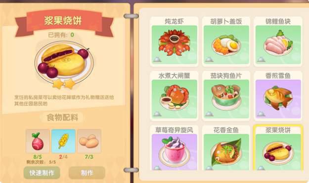配料容易获取,成本低而且利润高。做100份+的浆果烧饼是最赚钱的方式。不过对氪金要求较高,因为要加速,第一次会消耗80金豆,第二次则需要150了。