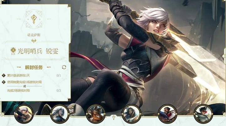 瑞雯:登陆游戏1天,使用瑞雯完成对局,或任意英雄完成2场对局;