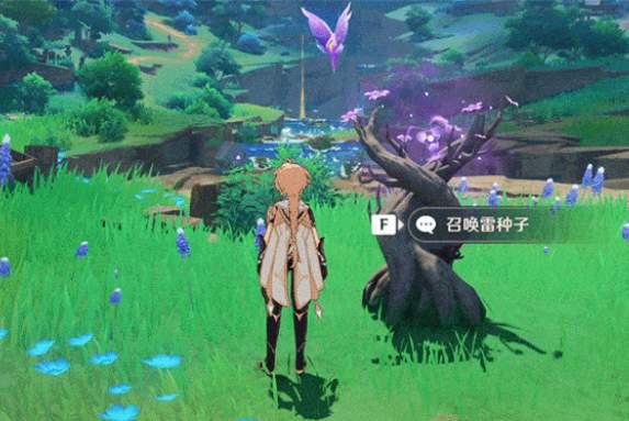 2、可以通过雷樱枝条召唤雷种子,在如图所示的位置按f键召唤。