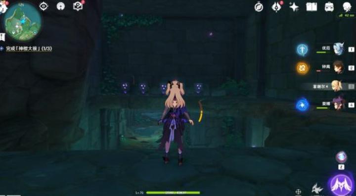 最后,把左边的关卡完成后解锁一个宝箱,旁边有一个水潭,跳下去一直游,来到这边可以发现第五个机关,解锁了,上面的水位就降下来了。