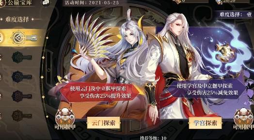 活动将于8月10日10点到8月24日5点开启,玩家需要通过探索路径寻找线索,进而获得活动代币,来在商店中换取各种丰富的奖励。在活动的难度选择上,公输宝库分为了5个难度,首次挑战为1级难度,随着每次挑战难度逐渐上升,奖励也会更丰富,玩家首次可以选择学宫势力或云门势力作为探索阵营,选择后不能更换,每次重新探索可以重新选择阵营,但要重新开始探索,出现的探索事件,可以消耗盘古令来探索,还可以在探索路径上挑战宝藏守护者,完成三个探索,就可以获得公输宝藏了。