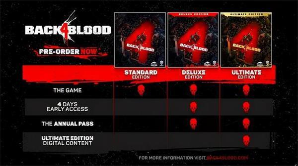 购买喋血复仇豪华版即可获得:基础版游戏、提前4天入手喋血复仇、年票(三个即将登场的可下载内容,包括全新剧情、可玩角色、特殊突变灾变者以及更多内容)。