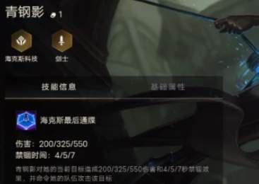 2、青钢影的技能可以造成中等数额的伤害,除此之外还能禁锢敌方,配合队友的话可以造成集火效果,是秒地方核心比较好用的棋子。