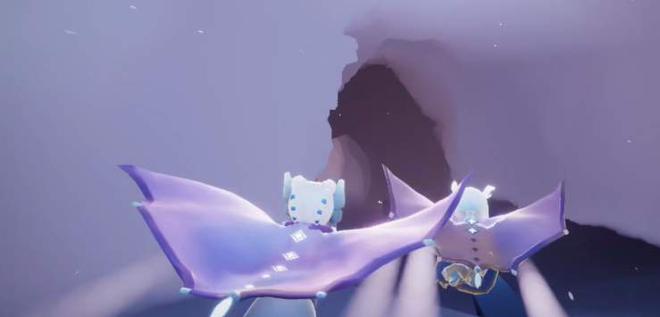 4、风试炼是从左往右数第三个试炼,参考下图箭头前往山洞内,可以看到很多的浮石。在复刻期间,风先知先祖会出现在浮石下方,玩家只需要点亮心火跟随其影子,就可以完成追忆了。