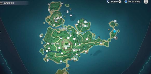 1、具体的雷神瞳全部位置,已经在下面的地图上给到大家了,我们把鹤观岛的雷神瞳也全部收集完毕,那么就可以把雷神像一次供奉到满级了;