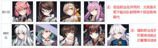 新手阵容的搭配,一般遵循2射手+2狙+2T+1辅助+1补充位的特点,如此一般可以适应多数环境下的挑战,原因如下: