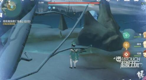 首先我们需要在龙脊雪山找到奇异的牙齿,这个奇异的牙齿可以在河对岸找到深赤之石来打碎这个冰块,牙齿会发出光点,我们只需要扎到光点就可以找到牙齿位置了;