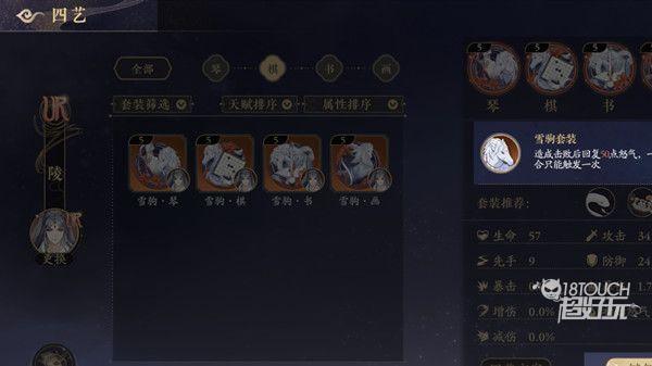 3、为陵搭配装备,且因提供的四艺只有一套,因此其他角色不推荐给到(给到后容易翻车),反之陵一个用很简单。