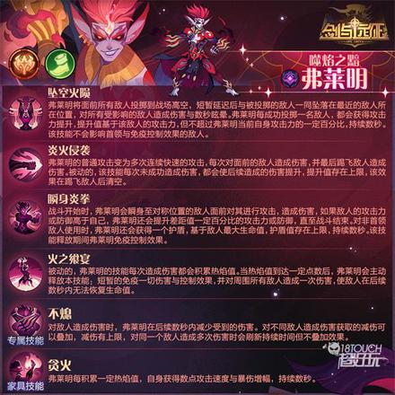 6、贪火(家具技能):弗莱明每积累一定热焰值, 自身获得数点攻击速度与暴伤增幅,持续数秒。