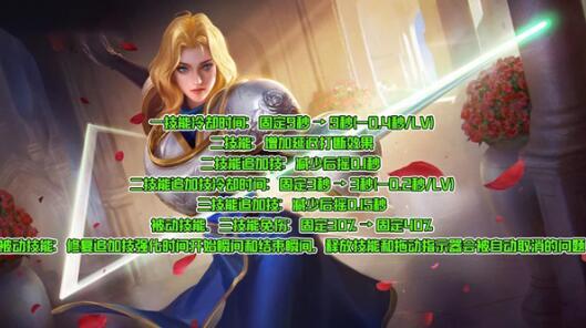 首先是一技能,一技能的冷却时间由固定的9秒钟调整到为:初始冷却9秒,之后每升一级降低0.4秒,这样的提升在中后期的时候效果是非常明显的,毕竟是实打实的降低了大量冷却时间,在追加使用二技能的话基本上后期3秒就是一个。