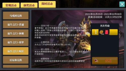 牛年将至,依米联合福牛给封魔人们准备了春节红包,通关福牛之门即可获得。打开春节红包可获取随机数量的春节印花,比拼福气的时候到了!春节印花可用于兑换新春福袋。