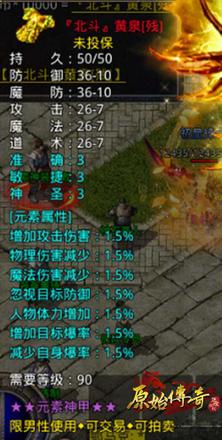 『北斗』黄泉[残]的合成途径为在庄园-元素神装使者处使用3件咆哮★聖精灵[残]+一件麒麟战甲+1W传奇币合成;