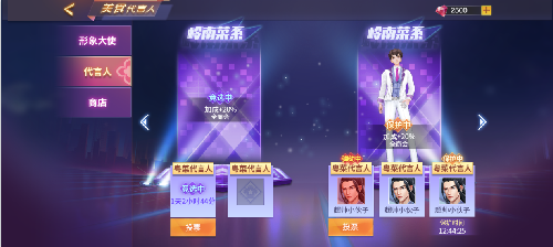 粤菜代言人、闽菜代言人、浙菜代言人、苏菜代言人、徽菜代言人、川菜代言人、湘菜代言人、鲁菜代言人A、鲁菜代言人B