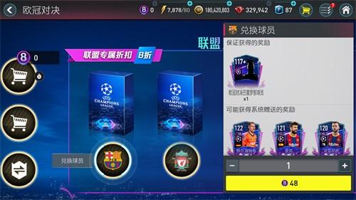 玩家获得的8强赛门票可在本章节中随机兑换OVR为117+或OVR为120+的欧冠对决基础球员!