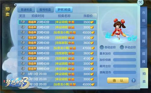 梦想3全服拍卖:3月6日、7日、13日、14日将开启梦想3全服拍卖。届时,感兴趣的小伙伴们不要忘记去看一看哟~