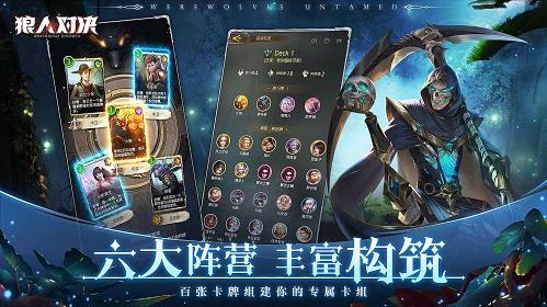 《狼人对决》采用1v1的方式,策术师可以自由构筑卡组进行策略对战。区别于传统对战卡牌,《狼人对决》创新性地尝试了无手牌概念,并在游戏中继承传统狼人杀昼夜交替的机制,令对局更加充满变数和趣味,策略和运气缺一不可。
