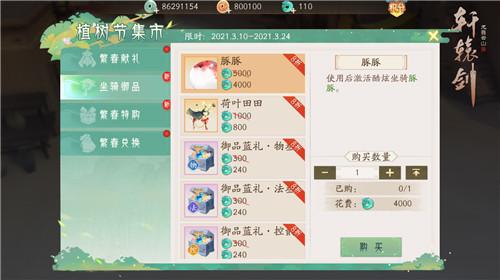 植树节集市限时开放,超值折扣惊喜来袭!使用玉帛即可兑换坐骑豚豚及鞍座荷叶田田、开箱御品蓝礼宝盒、获取详慧之书、神木之精等稀有养成材料!