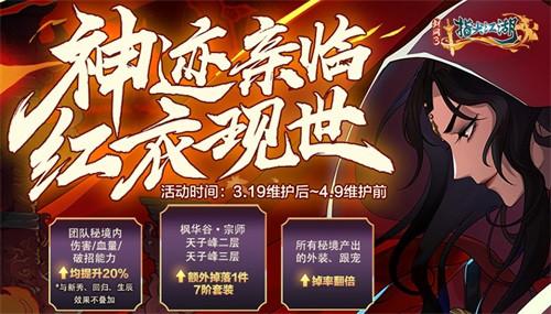 红衣教初入中原,给江湖少侠带来神秘增益【阿里曼祷言】,短时间内为各位少侠增进功力。活动期间,参战侠客均享有增益buff,团队秘境产出掉落概率翻倍!