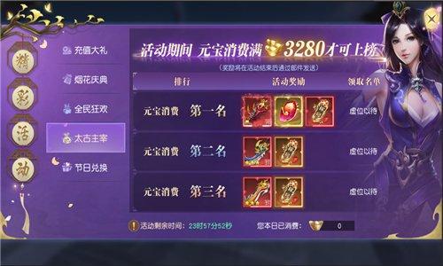 新版本伊始,相信很多人都有趁新赛季来一波快乐剁手的计划,那什么时候消费元宝能获得更高收益?当然是今天的新版本首次仙域盛会了。活动期间消费满3280元宝就能登上“太古主宰”排行榜,活动结束后所有榜上有名的玩家都将获得额外丰厚奖励,还包括神品太古武器、红色三星武器等极品装备!