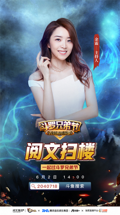此次斗罗兄弟节“阅文扫楼”活动将于6月2日14时正式开始,届时斗鱼平台(房间号:2040718)将全程独家直播。