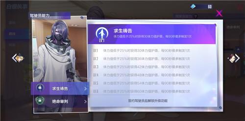 游戏中每位驾驶员都拥有两个驾驶员能力,一个作为人物天赋,为驾驶员提供加成。另一个为机甲专精,可以为机甲提供加成。