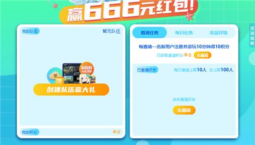 参与“组队赢现金”活动,就有机会获得大量现金红包奖励。参与活动需要邀请好友组队,每天可以邀请10名玩家,队伍总人数上线为100。队内玩家可以完成任务获得积分,每天“邀请好友”、“游玩手游”、“游玩端游”、“观看一起玩直播”都能获得相应积分。积分对应等级提升,各个等级对应了不同奖励,除了大量云游戏时长和云币奖励外,前十名冲顶队伍,还可以获得666元现金红包奖励。先到先得,大家赶紧去邀请小伙伴们完成组队,一起赢取现金红包吧。