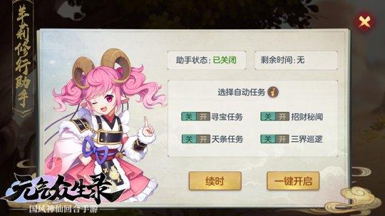 羊莉观各位上仙们苦修不易,特此招来修行助手,助力各位上仙们轻松修行。羊莉助手将代上仙们自动进行天条、寻宝、招财秘闻、三界巡逻!