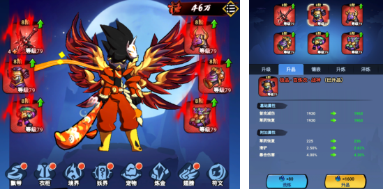 除了装备,获得各式各样的配饰也是提升属性的重要方式。通过活动可获得多种飘带,它不仅能助力英雄格斗,还能带来不菲的属性加成,通过升级、注入仙气、学习飘带技能更是后期提升战力的主要方式之一。翅膀也与飘带类似,可以通过升级与注入灵气来提高战斗力,同时翅膀也是高颜值火柴人的必备品之一。此外,活动还有几率掉落服饰时装,各种国风装扮不仅美感十足,还能获得大量的基础属性加成,是每位火柴人英雄必不可少的配饰。为了让火柴人不再孤军奋战,游戏还设计了宠物系统,玩家可以在战斗中携带两只宠物,与英雄并肩作战。每种宠物都有特殊技能,并且可通过强化、升品来提升宠物战力。
