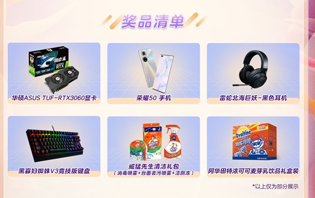 除了手机、外设、电脑这样的相对传统的常规福利操作,威猛先生、阿华田、T3出行等品牌合作也直击接玩家卫生防护、能量补给、交通出行等痛点问题!