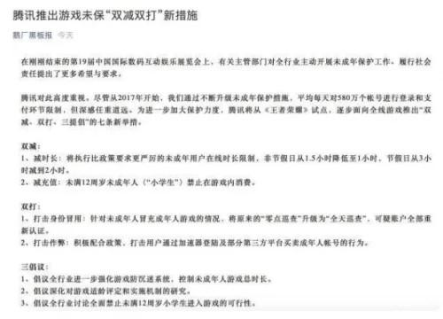 8月3日,腾讯游戏紧急发声,推行“双减双打”措施,进一步加大未成年保护力度。