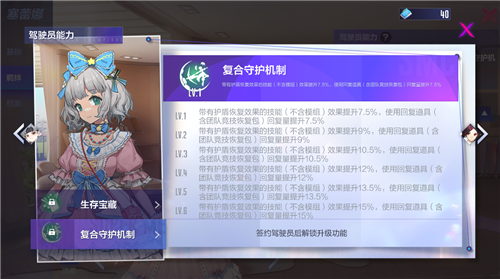 游戏中每位驾驶员都拥有两个驾驶员能力,一个作为人物天赋,为驾驶员提升作战能力。另一个为机甲专精,可以为机甲提供专属技能加成。