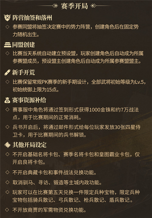 在比赛内容方面,本次赛事将选用“群雄割据”剧本,延用剧本的地图和势力特性等内容,并在此基础上对部分规则做了调整。比如开局由抽签决定势力阵营、每天定时发放资源。
