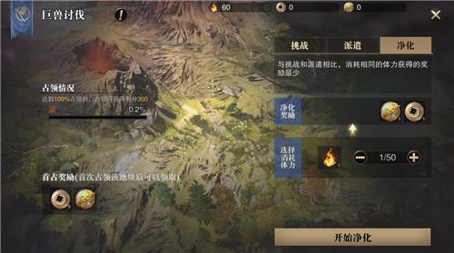 三、净化玩法:净化玩法与挑战和派遣相比,消耗相同的体力获得的代币奖励最少。游骑兵可以选择想要消耗的体力数量,对战场进行净化。如果今天没有时间,同时可派遣的猎魂也用完了,记得来净化玩法获取奖励哦!