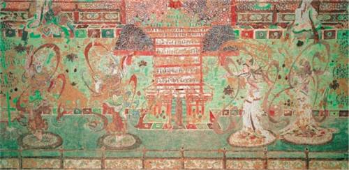 莫高窟第220窟北壁的《药师经变》,作为唐代乐舞场景最具代表性的作品,为人们研究胡旋舞艺术,以及丝绸之路上东西方的文化交融,提供了珍贵的图像记载。